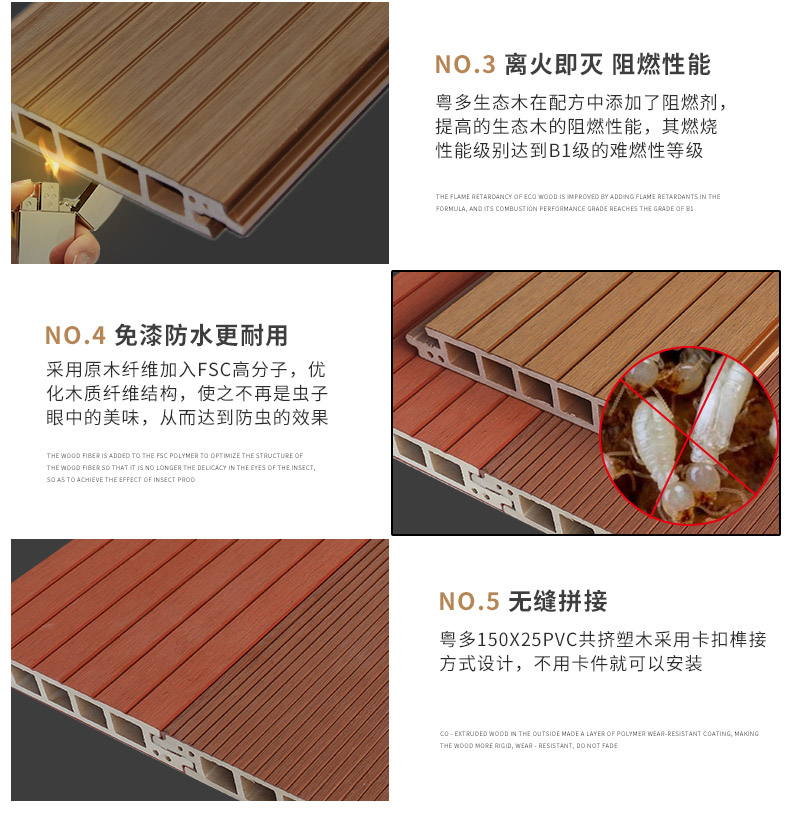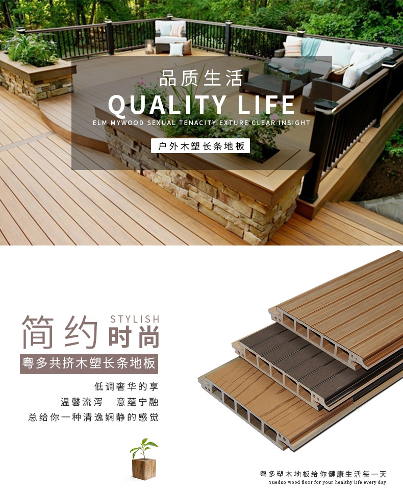 140x25A实心木塑地板 150x25共挤无缝地板 145x25圆孔地板(红木色)