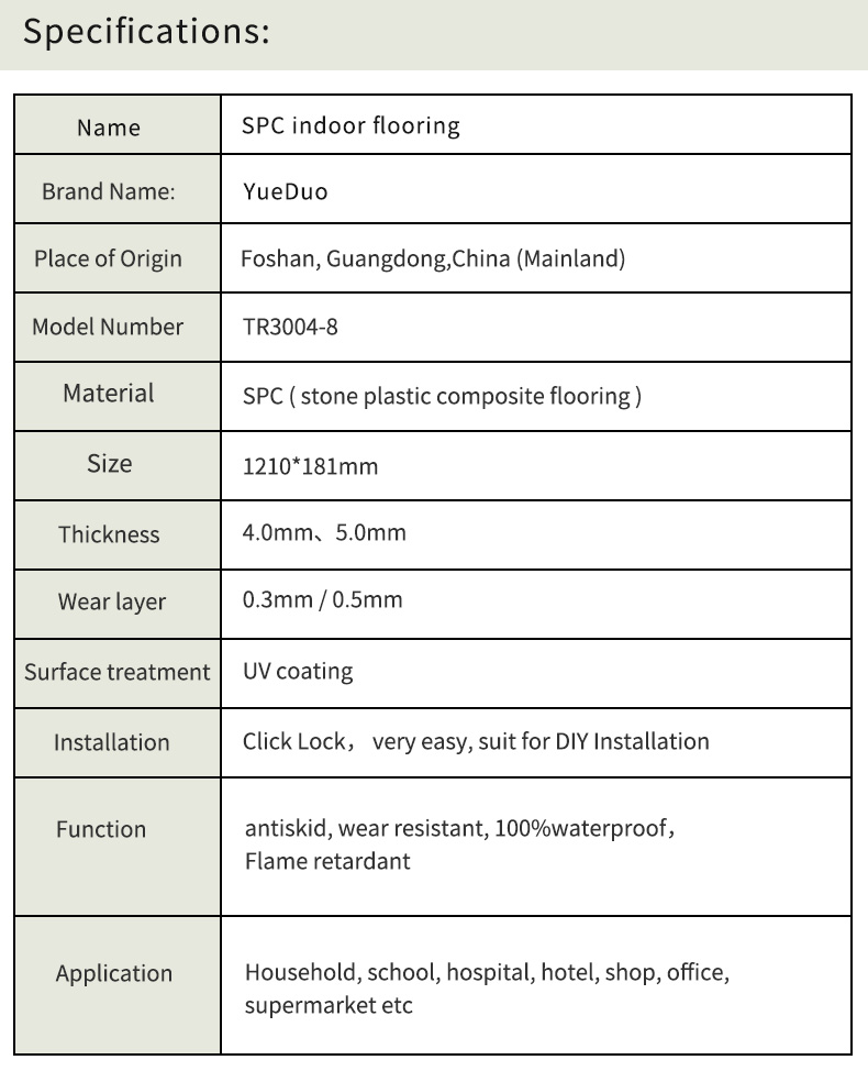 Product Name:Interlocking click SPC/PVC Plastic Flooring TR3004-8