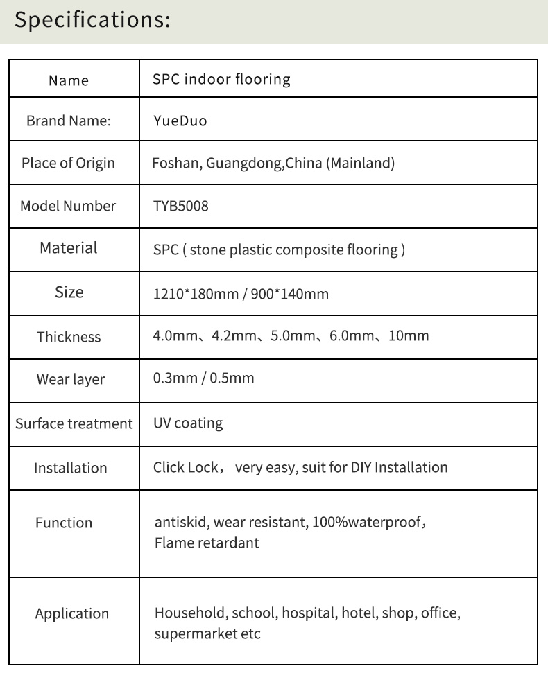 Product Name:Interlocking click SPC/PVC Plastic Flooring TYB5008