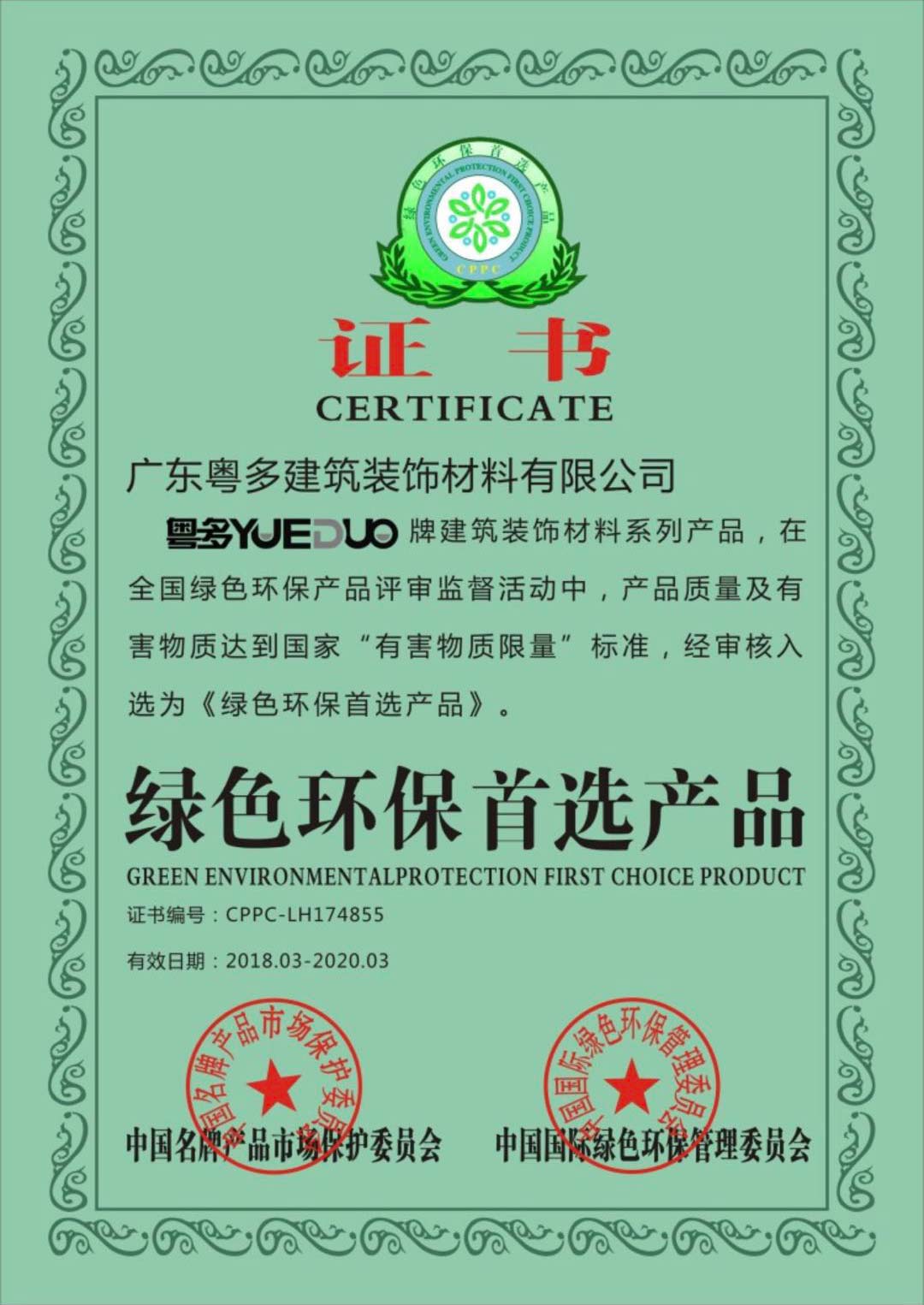 绿色环保首选证书 质量、服务、诚信AAA企业证书